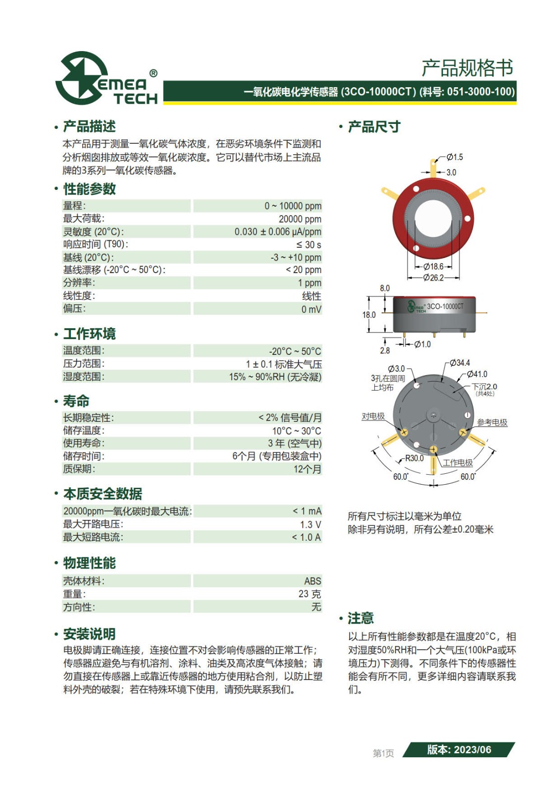 3CO-10000CT盛密3系烟气传感器 可替代CITY 3FF